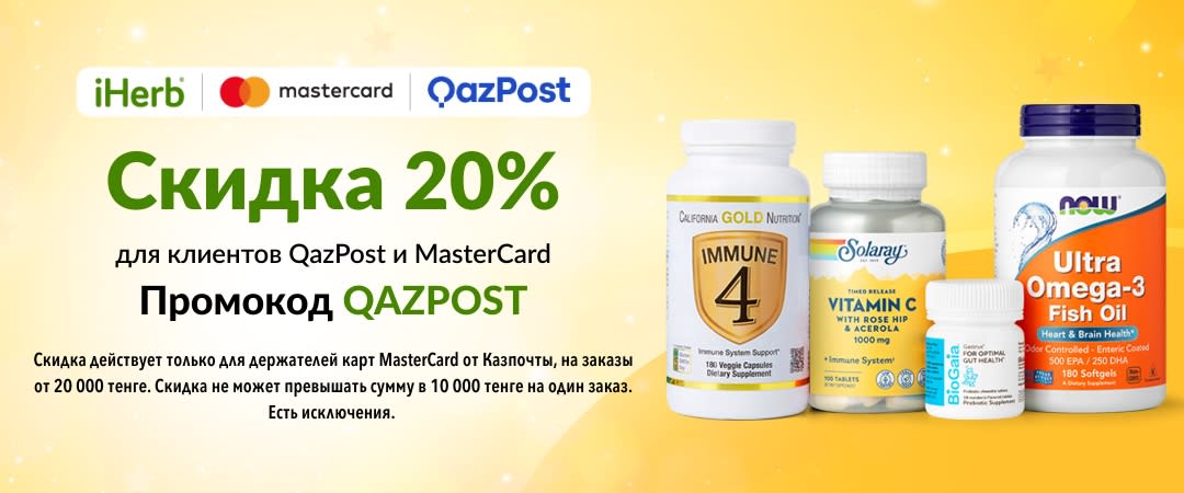 • Для активации скидки введите промокод QAZPOST в корзине при оформлении заказа на сайте iHerb